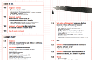 L’acte s’iniciarà el dijous 23 a les 17:00 h amb la inauguració institucional i la conferència de Carme Bergés Sala (Museus laberints: una oportunitat per a crear nous models museogràfics i educatius). Tot seguit es farà la inauguració de l’exposició Tipologies de museus de l’educació al claustre de l’IEC i una copa de cava de benvinguda.