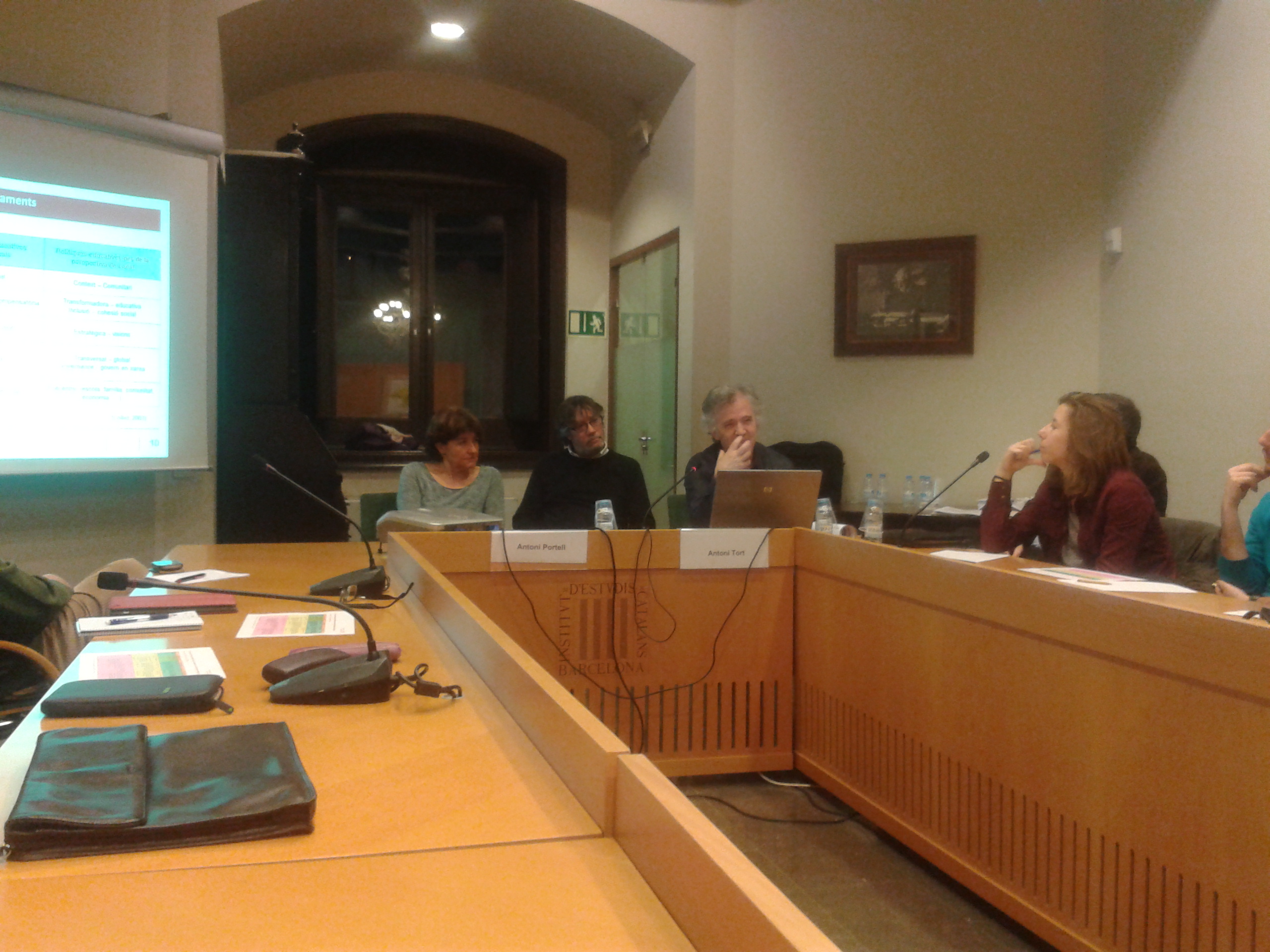 Presidència Josep González-Agàpito, president de la Secció de Filosofia i Ciències Socials, delegat de l’IEC, Martí Teixidó, president de la SCP i Carme Ortoll, Directora General de Primària del Departament d’ Ensenyament de la Generalitat de Catalunya.